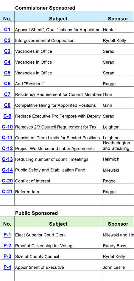 So, I will continue to do the work the County cannot seem to accomplish. Even if they do catch up, I will probably continue to chart them all like this. This platform does not support tables so below is just an image. Click HERE or on the image to go to the table with functioning hyperlinks so you can go to each Amendment page.