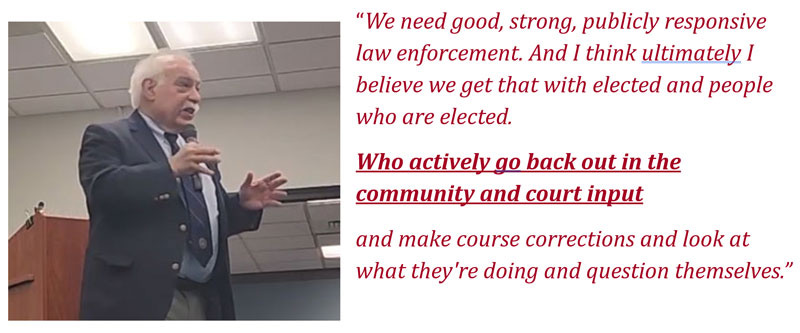 What struck me though was his point about the main advantage of an elected Sheriff at 28:50