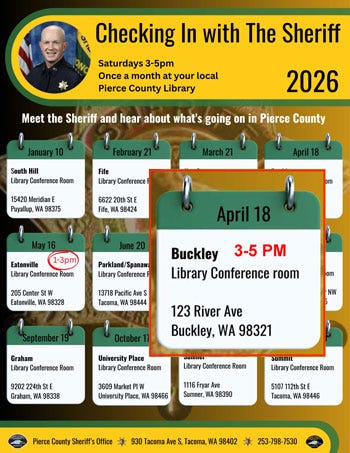 Hear about what’s going on in Pierce County and ask the Sheriff anything.
